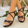 New braided strap open-toe flat sandals women's large size elastic band solid color sandals sandals