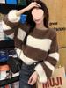 Women's Striped Short Loose Soft Waxy Mink Fleece Knitted Sweater
