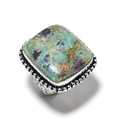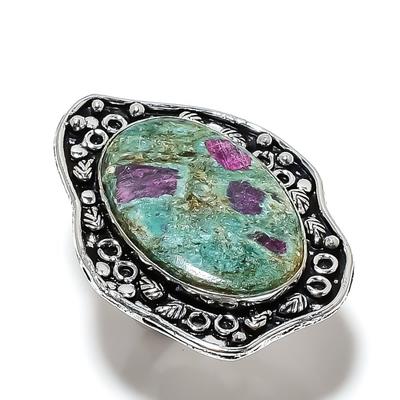 Ρουμπίνι σε Φουξίτη Χειροποίητο Δαχτυλίδι από Ασήμι Στερλίνα 925 Μέγεθος 10 R7g02