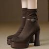 Elegant Women Ankle Boots Suede High Heels Shoes Sexy New Chunky Shoes Designer 2025 Winter Boots Woman Pumps