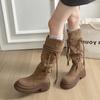 Platform Western Boots Women's 2025 New Autumn Stacking Boots Retro Bow Short Boots Knight Boots