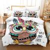 Kawaii Cartoon Owl Duvet Cover Set Full Queen King Size Owl Bedding Set for Girls Boys Brown Owl Cartoon Animal Comforter Cover