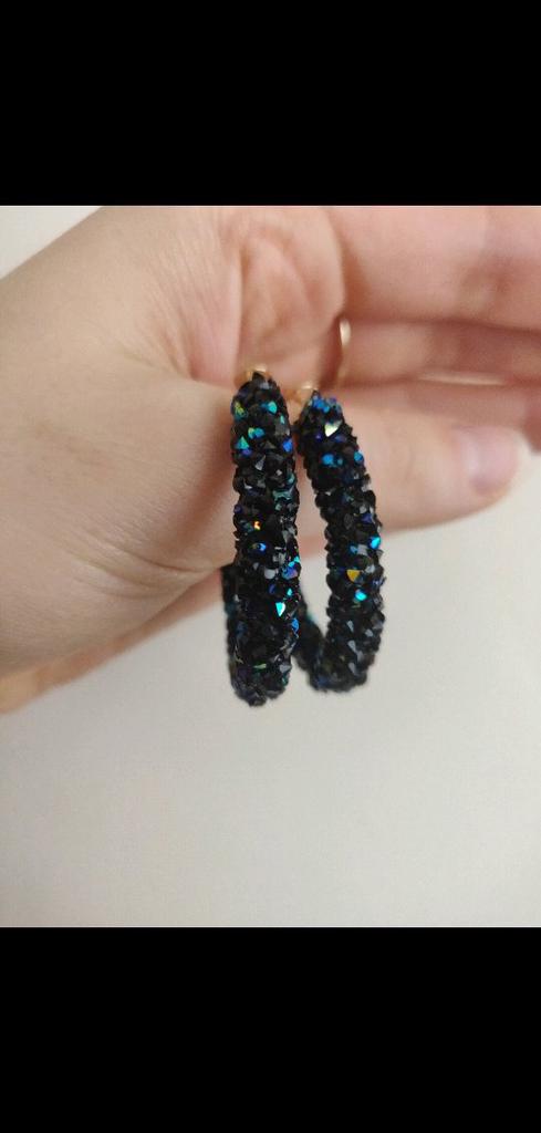 Bohemian Luxurious Crystal Rhinestone Beads Geometric Hoop Earrings Shiny Circle Earrings