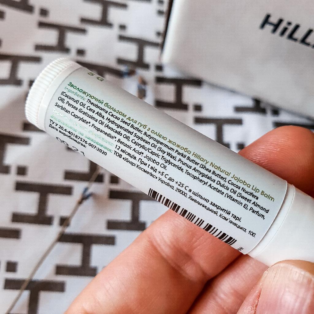 Hello 🙂 Excellent lip balm with jojoba oil from the Ukrainian brand Hillary! Natural Jojoba Lip Balm instantly heals small wounds and cracks on the lips. Jojoba oil in provides the lips with deep nourishment and hydration. The balm gently cares for the sensitive and delicate lips skin relieves dryness and adds volume. The jojoba Lip Balm leaves lips velvety, radiant and well-groomed. I have already managed to check it in the autumn, windy weather. Jojoba oil: - moisturizes and protects from drying out; - has antimicrobial and antifungal properties; - has a softening and wound healing effect. Coconut oil: - ensures the maintenance of water balance; - improves blood circulation; -provides a tonic and healing effect. Sweet almond oil: -hypoallergenic; - slows down the aging process; - reduces inflammation. Shelf life :1 year I received it within 3 weeks nicely packedbin a branded box .I'm so satisfied with the purchase To buy ,I recommend💯.