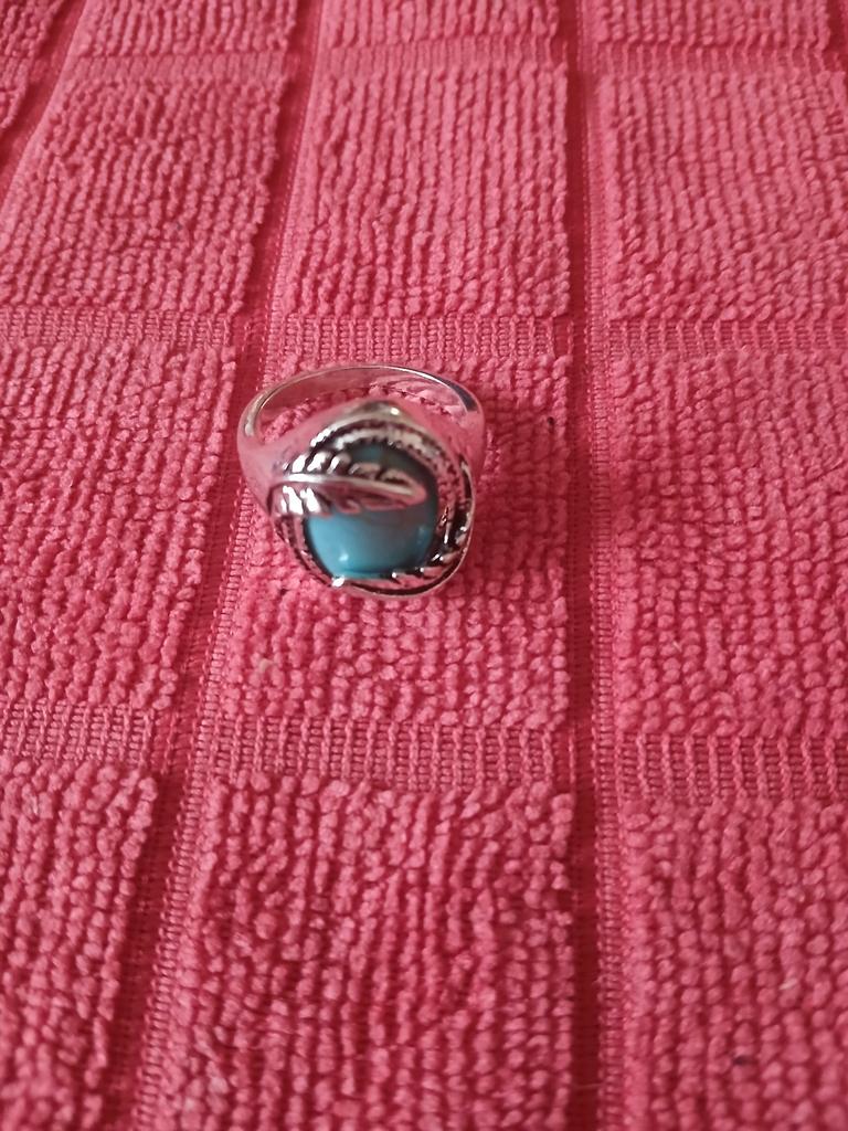 Vintage Leaves Cover Artificial Turquoise Ring Wedding Party Engagement Jewelry