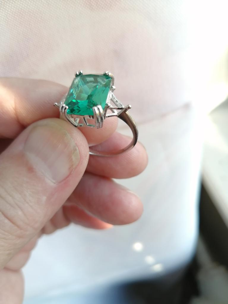 S925 Sterling Silver Women's Emerald Square Ring: High-End Niche Design for Index Finger Jewelry
