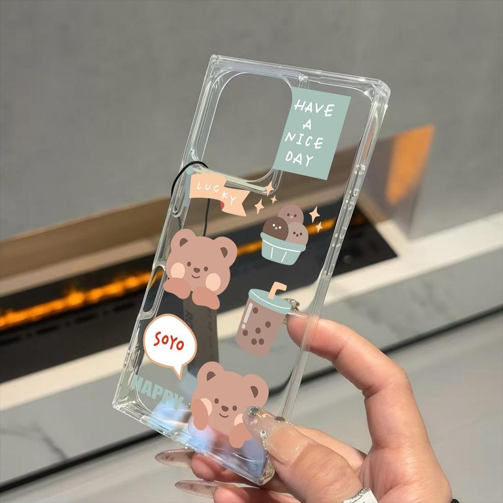 Clear Square Back Tube Case Protection For iPhone 16 ProMax 11 13 12 15 Plus 14 Pro Max Anti-Oxygen,Milk Tea Bear Pattern Casing