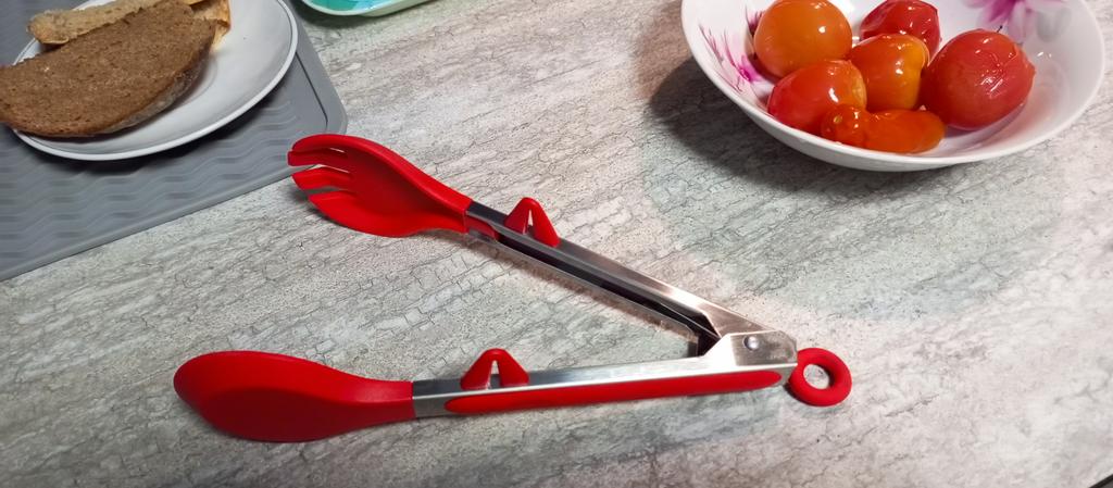 Vertical Foot Kitchen Food Tongs – Stainless Steel Heat Resistant Silicone Tips Round, Strong Comfort Grip,Non-Scratch Pan, for Cooking, BBQ, Salad