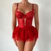 Women's Bra Set Puffy Skirt Garter Belt Suspender Bra and Panty Set sexy set lingerie Lace Mesh Printed Mini Skirt Sexy