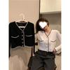 Autumn Women's Buckle Decoration Pure Color Contrasting Long Sleeve Round Neck Flat Needle Knitted Coat