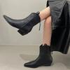 Sheepskin version~ pointed V-mouth western boots women's Chelsea retro pleated thin boots thick heel leather short boots