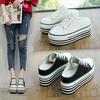 Fashion Elegant Black White Canvas Platform Wedge Slippers Women Mules Shoes Leisure Stealth Increase Slippers Woman Closed Toe Sandals