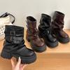 Popular Internet celebrity black retro platform Martin boots women's 2025 new autumn and winter British style heightening thin short boots