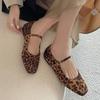 Chaussures de Printemps et d'Été Grande Taille Confortables Rétro Bout Rond Décolleté Boucle Semelle Plate Léopard Chaussures pour Femmes