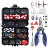 263pcs/Set Fishing Accessories Set with Tackle Box Including Plier Jig Hooks Sinker Weight Swivels Snaps Sinker Slides