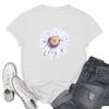 Ladies Casual Chrysanthemum Printed T-Shirt Round Neck Pullover Short Sleeve Top