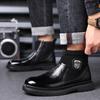מותג יוקרה גברים צ'לסי מגפי עור פרה אמיתי בעבודת יד משרד מגפיים עבור שמלה רשמית חתונה עסקית מסיבת חתונה נעלי אצבע עגולה
