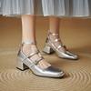 Gold silver patent leather hollow Mary Jane thick heel sexy high-top single shoes stage performance fashion model catwalk shoes