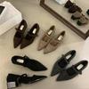 Winter Cotton Women Mary Jane Shoes Shallow Pointed Toe Shoes Concise Square Heels Shoes Zapatillas De Mujer