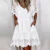 Abito in pizzo bianco con scollo a V Abito estivo con gancio a fiori Abito vuoto Tasca casual Elegante vestito da ballo per club party elegante solido e sottile 21815