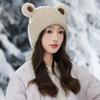 Y2K Bear Ear Thicken Hats Women Soft Plush Ear Head Protection Cute Knitted Korean Wool Caps Cool Girl Handmade Beanies