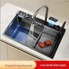 White Nano Kitchen Sink Large Single Slot Waterfall Integrated Digital Display Faucet Soap Dispenser Cup Washer Pure Tap
