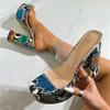 Liyke Colori Misti Stampa Serpente Pelle Donna Scarpe con Plateau Chunky Street Sexy 13.5CM Tacchi Alti Spessi Ciabatte Sandali da Donna