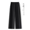 Retro Wide Leg Casual Pants for Spring and Summer Cotton and Linen Solid Color Elastic Waist Plus Size Women's Clothing