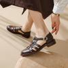 Fashion Women's New Spring and Autumn Round Head Thick Bottom Hollow Metal Belt Buckle Middle Heel Large Roman Casual Single Shoe