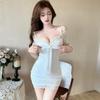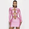 Women's Ribbed Knit Sexy Slim Drawstring Pleated Hip Cover Long Sleeve Dress