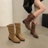 Suede Women Snow Mid Calf Boots Mid Heels Fashion Shoes Woman 2024 Trend Chunky Chelsea Boots Pumps Retro New Goth Mujer Botas