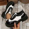 Fashion British Style Casual Lace-up Women Leather Shoes 2024 Classic Black and White Contrast Loafers Fashion Round Toe Platform Shoes