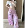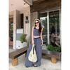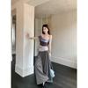 Kumikumi Gyaru Set Contrast Color Fake Two Pieces Cami Women Summer Drawstring High Waist Wide Leg Pants Two-piece Set