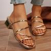 Fashion Fashion Gold Narrow Band Slides Women 2025 Summer Cross Strap Square Toe Slip On Sandals Silver Novelty Strange Heel Slippers