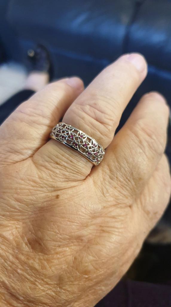 Nuostabus žiedas. Nuotrauka nedaro teisingumo. Mažytės purpurinės drožlės, išmargintos visur.fit puikiai tinka
