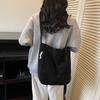Black Women Canvas Tote Shoulder Bags for Girls Solid Color Ladies Handbags School Book Shopper Travel Women's Crossbody Bag