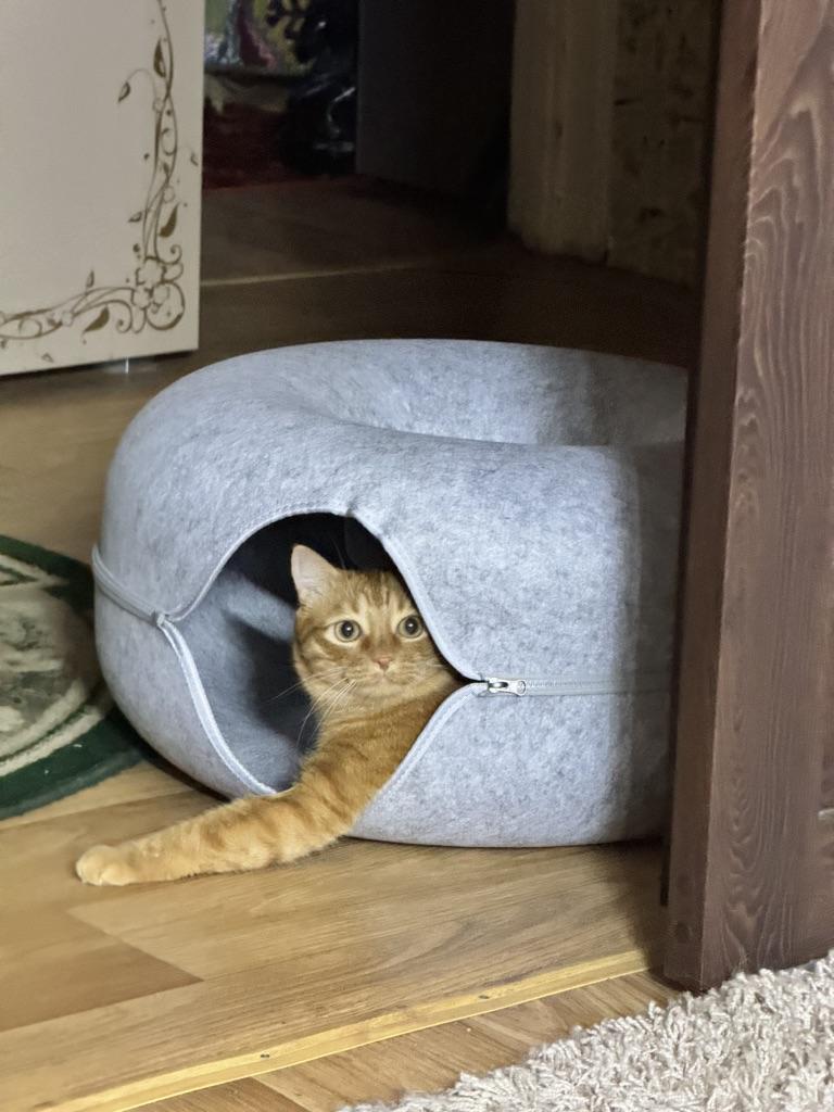 Donut Cat Bed Tunnel Interactive Bed Lekehus for 2 katter Filt Kjæledyr Katt Halvlukket hule Innendørs trening Kennel leketøy Kjæledyrsutstyr