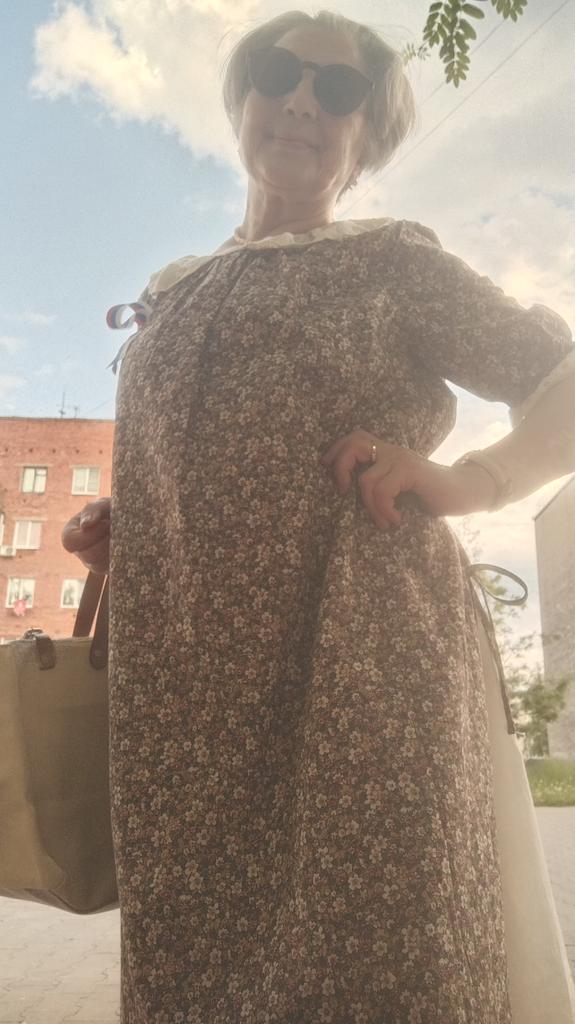 Flott kjole, vakker, delikat, feminin. Bomullen er tett, det er fôr. Den passer både til varmt og kjølig vær. Størrelsen opp til 50 vil sitte bra.