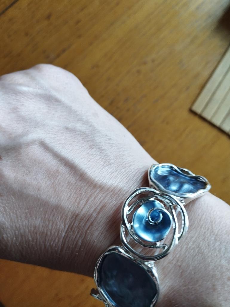 Et originalt aksentstykke. Skinnende, lyst, uvanlig, ser bra ut, tiltrekker øyet. Med elastisk bånd, passer for enhver hånd jeg liker det. Super! Takk!