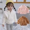 Barneklær Ensfarget Pluss Fleecejakke Høst og Vinter Baby Utenlandsk Stil Korallfleece Glidelåskåpe