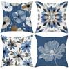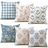 Blue Vintage Floral Pillowcase Dormitory Decoration Office Living Room Sofa Home Pillowcase
