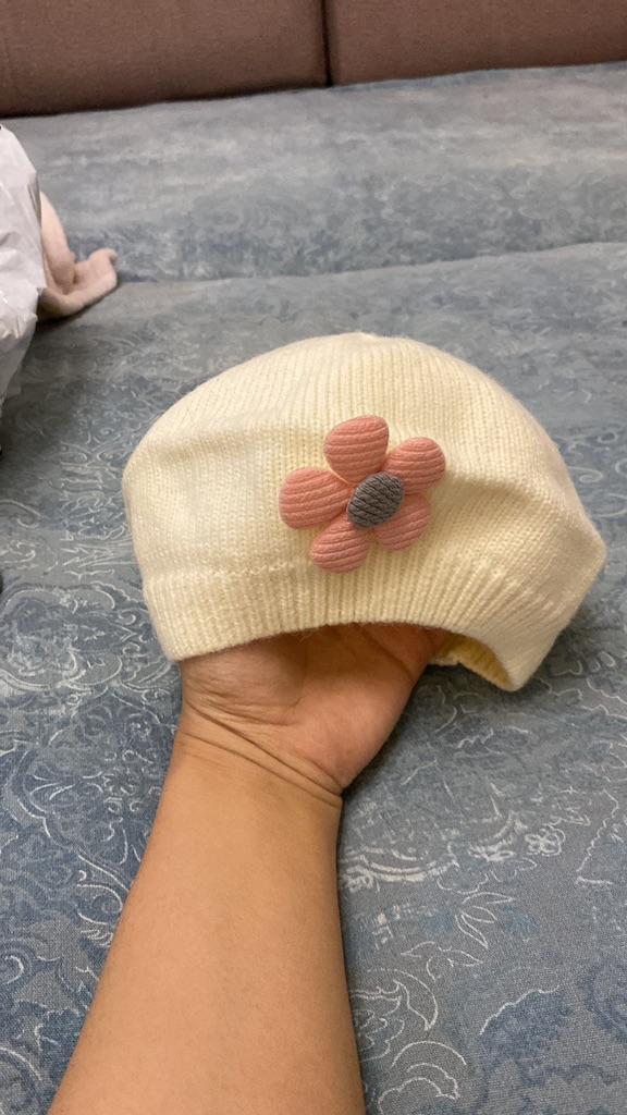 Blomst Baby Beret Hat Ensfarget Vinter Varm Strikket Lue Cap For Spedbarn Jenter Koreansk Småbarn Prinsesse Kunstner Maler Caps