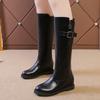 Fashion Khaki Women's Boots 2024 New Round Toe Low Heel Warm Shoes Autumn and Winter Black Fashion Zipper Women's Knight Boots Shoes