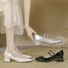 French Mary Jane Women'S Shoes Soft Leather Coarse Heel Late Evening Wind Small Leather Shoes Versatile High Heels Medium Heel Single Shoes