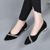 Women's Summer Footwear Diamond Shoes for Woman 2024 Rhinestone Office Low Heel Elegant with Crystals Black Stylish on Promotion