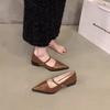 Spisse røde Mary Jane-sko dame 2025 nye vår og høst allsidige middels høyhælte plattform franske høyhælte Mary Jane-sko