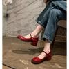 Red retro light mouth thick heel single shoes women's 2025 new spring and autumn with skirt round head French Mary Jane small leather shoes