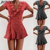 Summer Women's Floal A-Line Dress Sweet Elegant Floral Ruffles V-neck Bandage Short Dress for Lady Chic Flowers Mini Dress