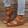 Large Size Slippers Retro Car Line Non-slip Round Head Slope Heel Comfortable Word Cool Slippers Women