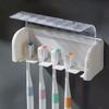 A Covered 5-slot Toothbrush Holder Self-adhesive Wall Toothbrush Storage Rack Plastic Bathroom Supplies